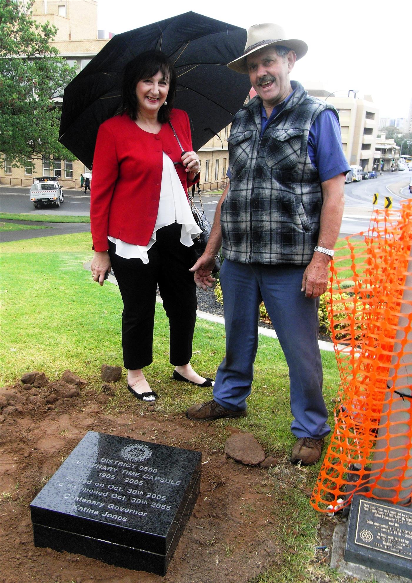 Past District Governor Katina with Past Rotarian Brian Helbig. who arranged the return of the Capsule from Alice Springs followed by its placement in position.