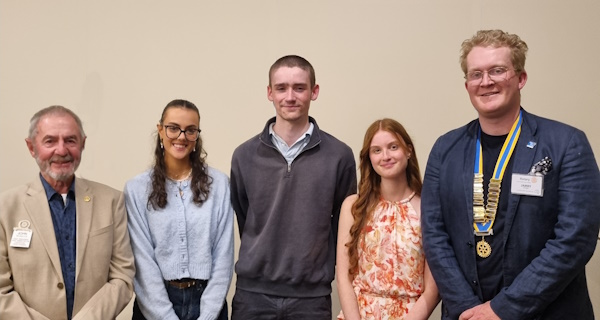 Rotarian John, followed by students Meg Couzner, Lachlan Elton-Martin and Olivia Lofay with President James.
